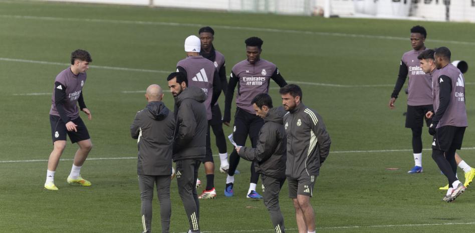 整堂训练课期间,阿韦洛亚始终神情严肃,密切关注着球员们的热身跑动和抢圈训练。值得一提的是,阵中核心姆巴佩因膝伤缺席,罗德里戈、吕迪格以及米利唐也未现身训练场。