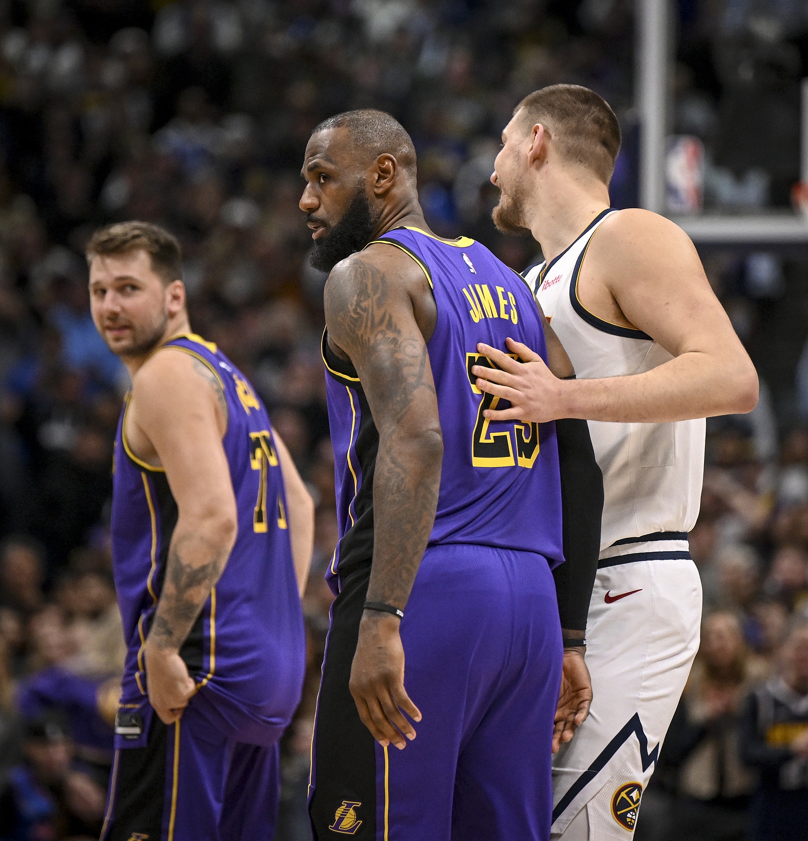 掘金在防守端也对湖人三核量身定制了防守策略,防东契奇持球挡拆双人夹击(放斯玛特),防里夫斯持球挡拆中远投让约基奇蹲坑放投,防老詹只在他背身坐到禁区深处才夹击。